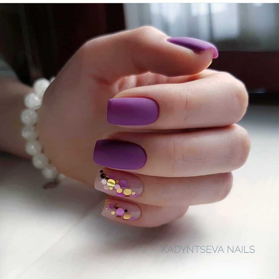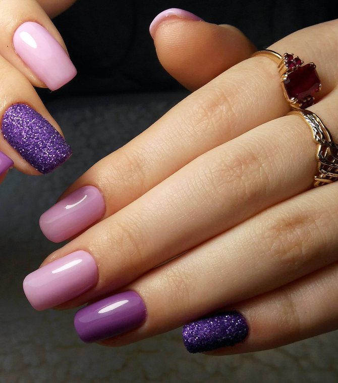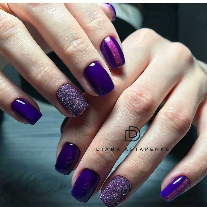 Изумительный фиолетовый маникюр 2021-2022 года с глиттером