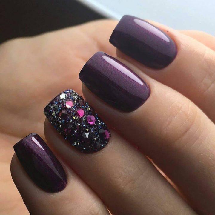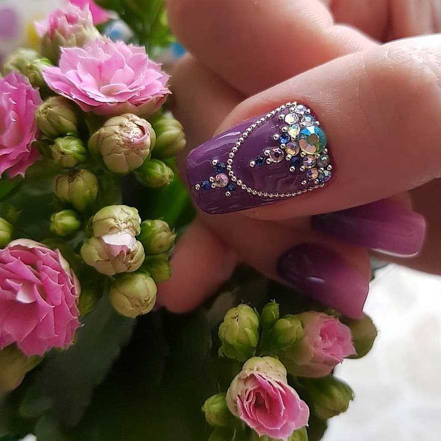 Роскошный фиолетовый маникюр 2021-2022 года со стразами