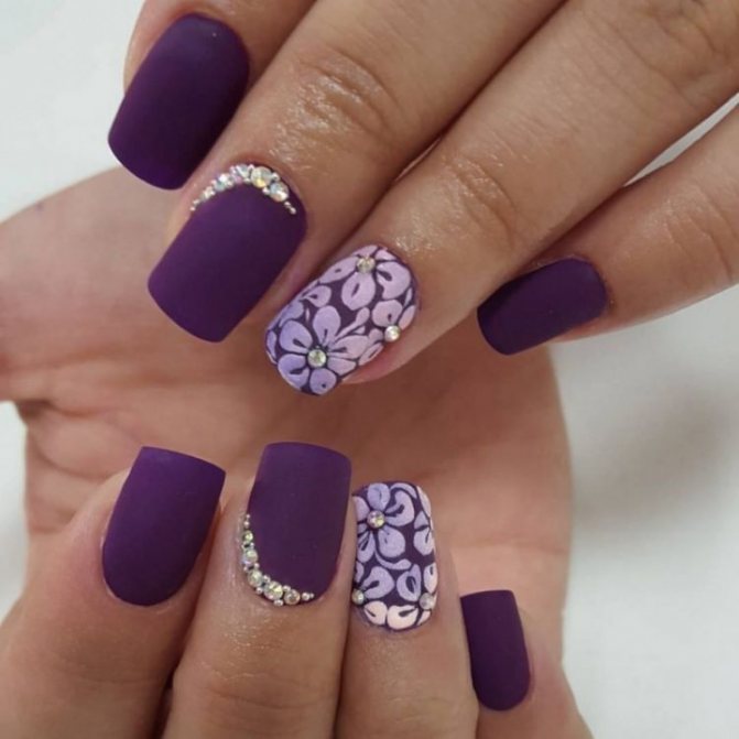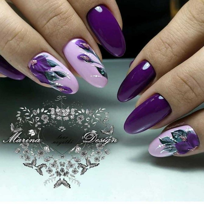 Волшебные цветочные мотивы в фиолетовом маникюре 2021-2022 года