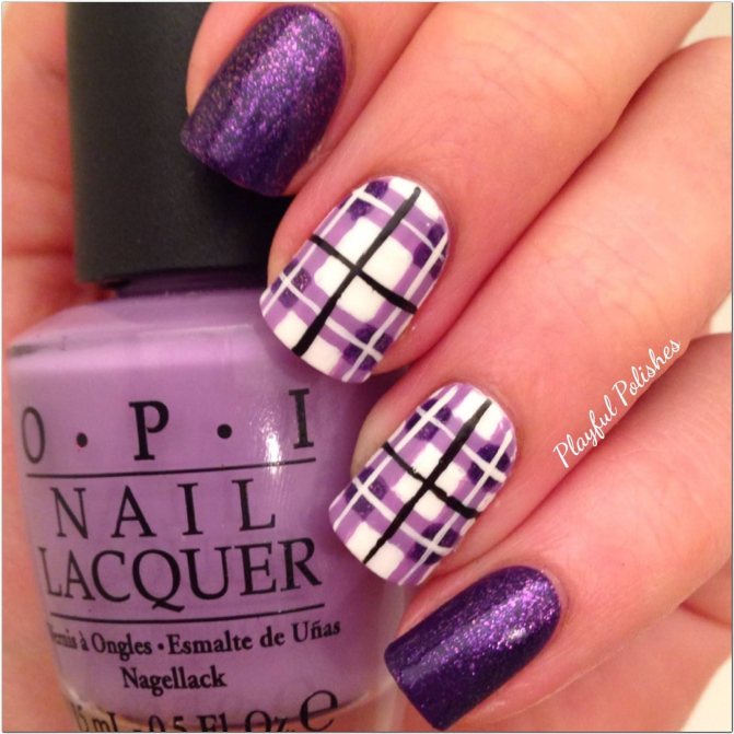Придать оригинальности и новизны в любой нейл-арт, конечно же, помогут принты и рисунки. Стильный и эффектный фиолетовый маникюр вы сможете выполнить с геометрией, что придаст стильные нотки в ваш лук.