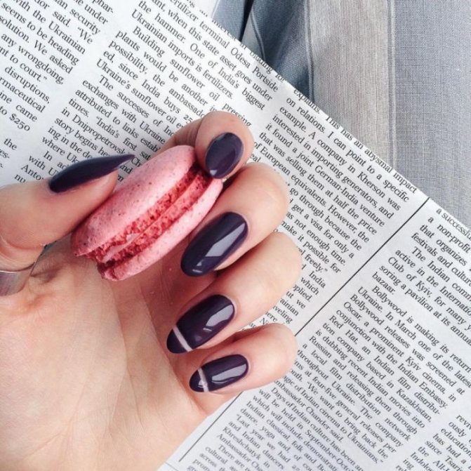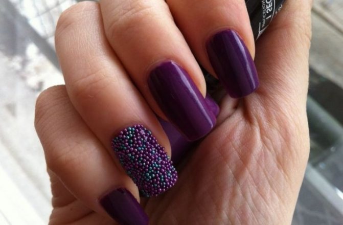 - фиолетовый, как и любой другой темный лак, визуально сужает ногтевую пластину, поэтому не покрывайте им и без того узкие ноготки,