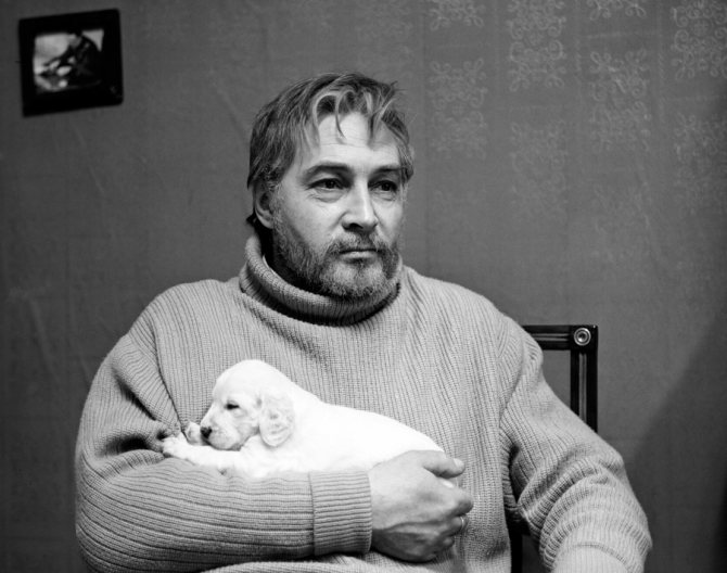 В 1977 году Вячеслав Тихонов снялся в очень пронзительной картине Станислава Ростоцкого «Белый Бим, Черное ухо».