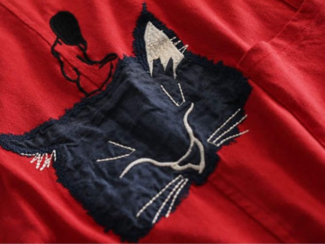 Японцы, например, предпочитают ручную аппликацию. На футболке или майке уместнее всего смотрится машинная аппликация. При работе на машинке все необработанные края мы закрываем швом зигзаг, и так мы будем уверены в том, что ткань через некоторое время не будет “лохматиться”. Но швейные машинки, к сожалению, есть не у всех. Если же машинки не имеется – советуем сделать не аппликацию, а вышивку на самой футболке, или на подложке из фетра или кожи.