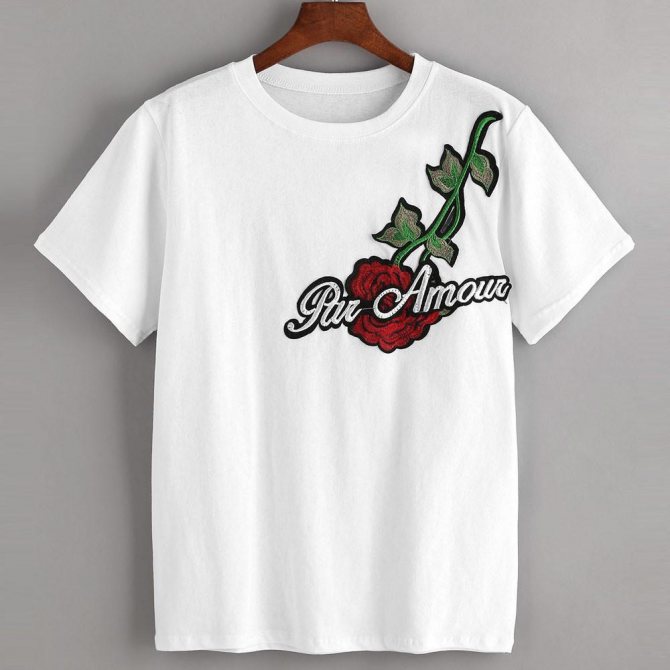 Перед тем, как украсить своими руками футболку, выберем из нескольких способов декора тот, который больше нравится. Например, в последнее время стало модно декорировать одежду аппликацией, нашивками, патчами. Аппликация бывает ручная и машинная. Светлую футболку украсит аппликация любого цвета, черную – светлого.
